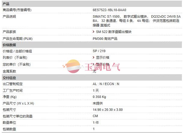 SIMATIC S7-1500 PLC模块, 数字式输出模块, DQ32xDC 24V/0.5A BA, 32 条通道,每组 8 条, 4A 每组; 供货范围包括前连接器 直插式