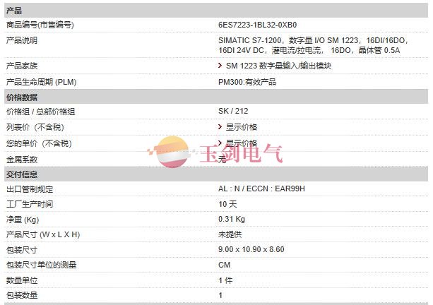 SIMATIC S7-1200 PLC模块,数字量 I/O SM 1223,16DI/16DO, 16DI 24V DC,灌电流/拉电流, 16DO,晶体管 0.5A