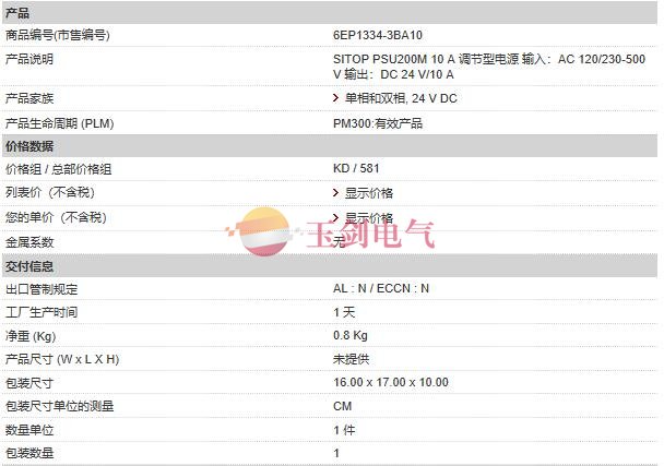 西门子电源 6EP1334-3BA10 DC24V 10A